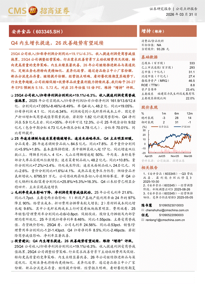 安井食品:招商证券-安井食品-603345-Q4内生增长提速,26改善趋势有望延续-260331