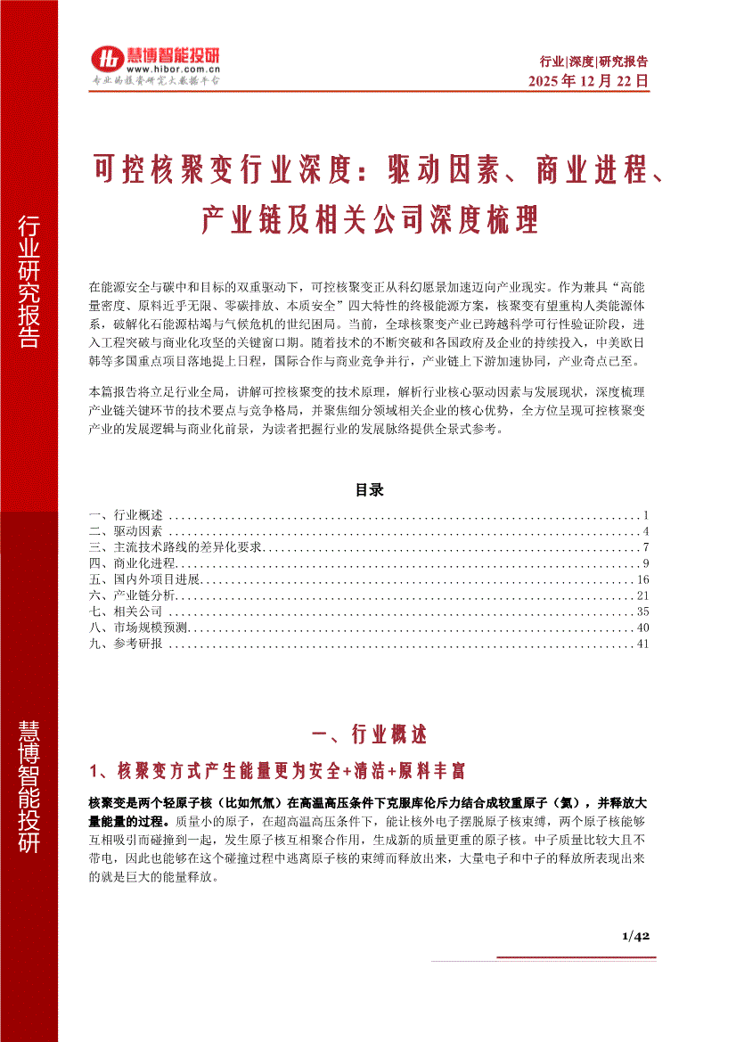 可控核聚变行业:慧博智能投研-可控核聚变行业深度:驱动因素、商业进程、产业链及相关公司深度梳理-251222