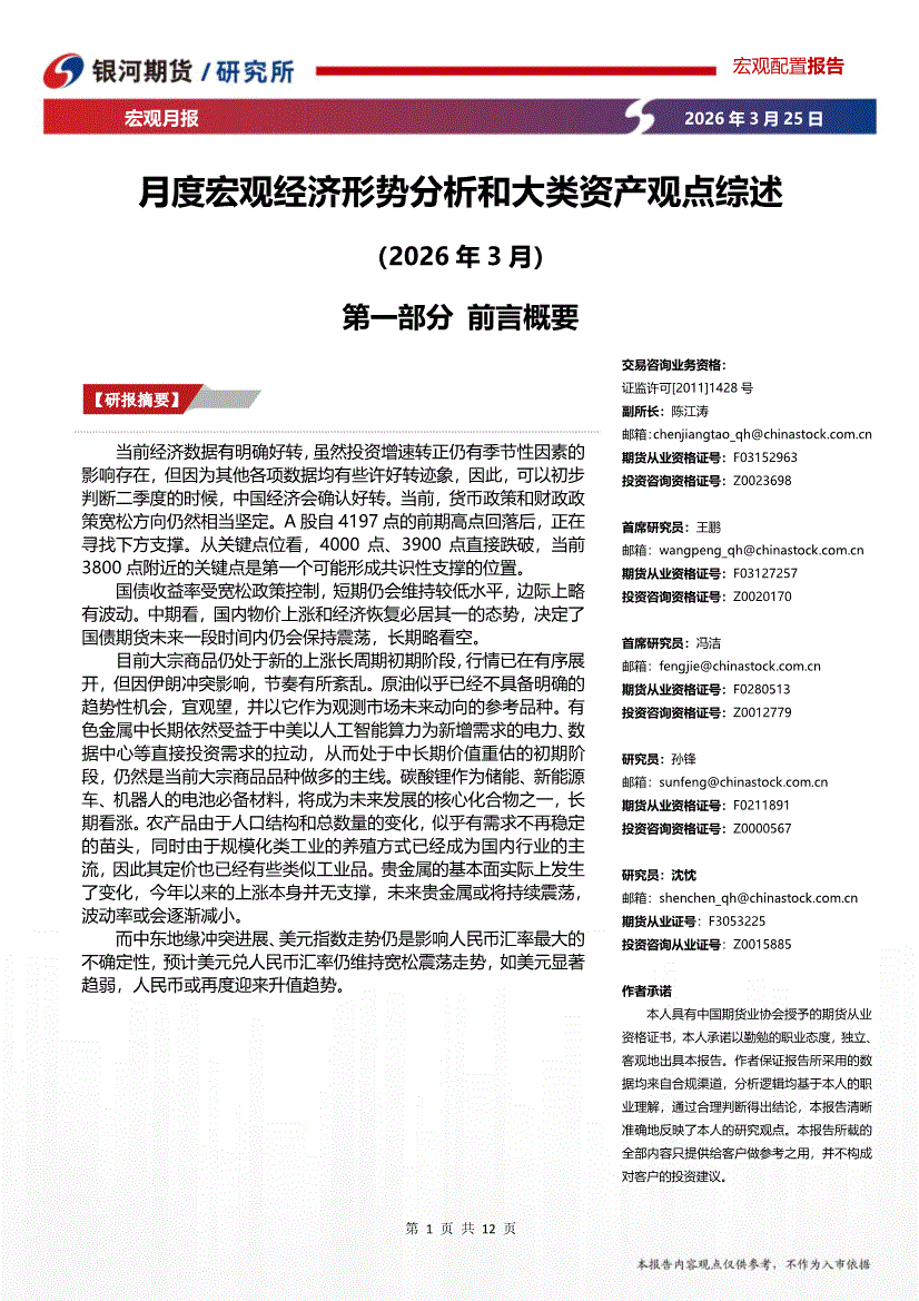 银河期货-宏观月报:月度宏观经济形势分析和大类资产观点综述(2026年3月)-260325