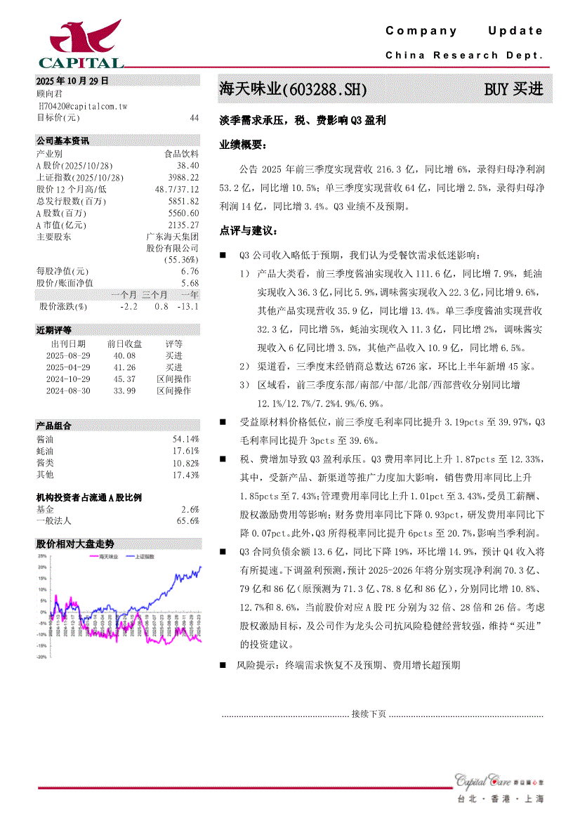 海天味业:群益证券-海天味业-603288-淡季需求承压,税、费影响Q3盈利-251029