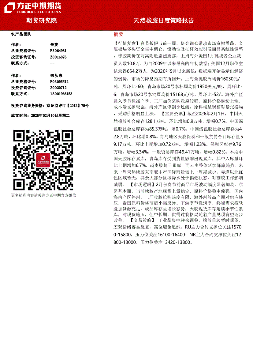方正中期期货-天然橡胶日度策略报告-260210