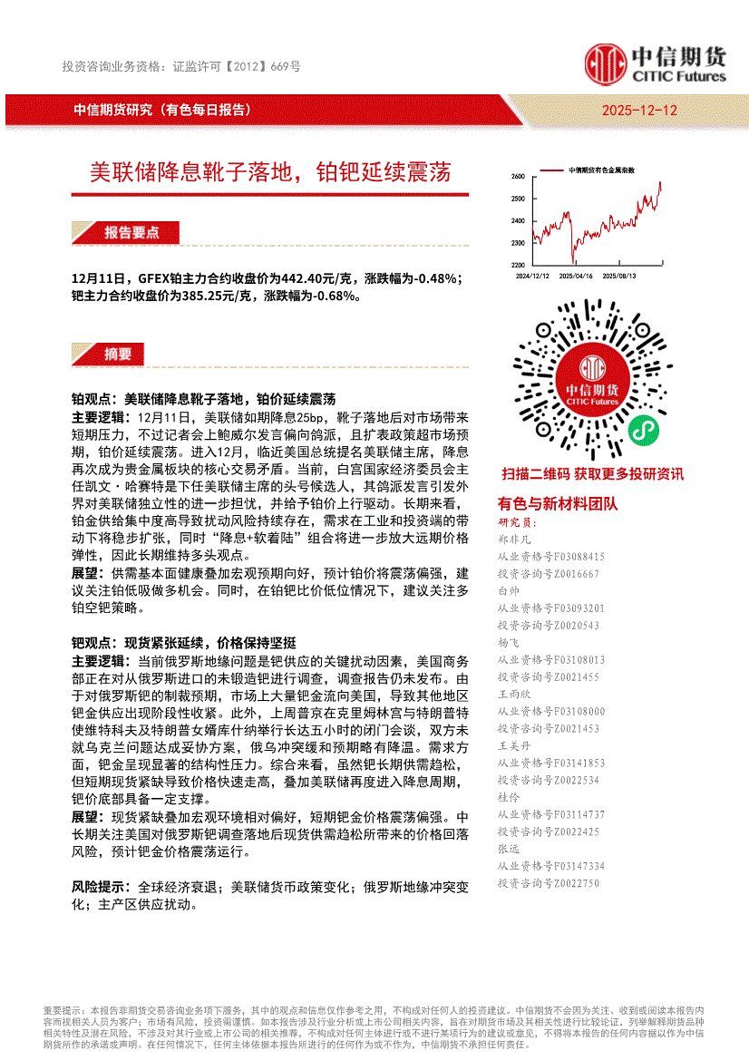中信期货-有色每日报告:美联储降息靴子落地,铂钯延续震荡-251212