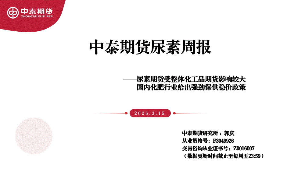中泰期货-尿素周报:尿素期货受整体化工品期货影响较大,国内化肥行业给出强劲保供稳价政策-260315