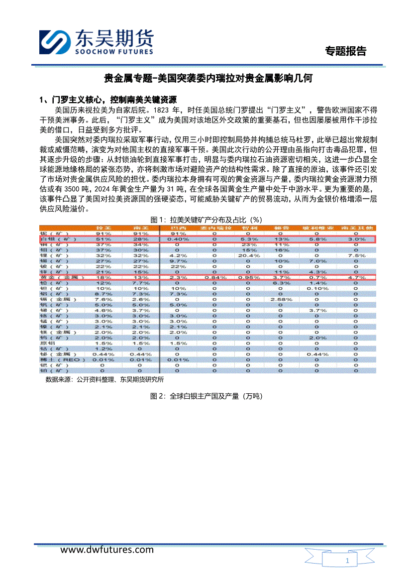 东吴期货-贵金属专题:美国突袭委内瑞拉对贵金属影响几何-260113