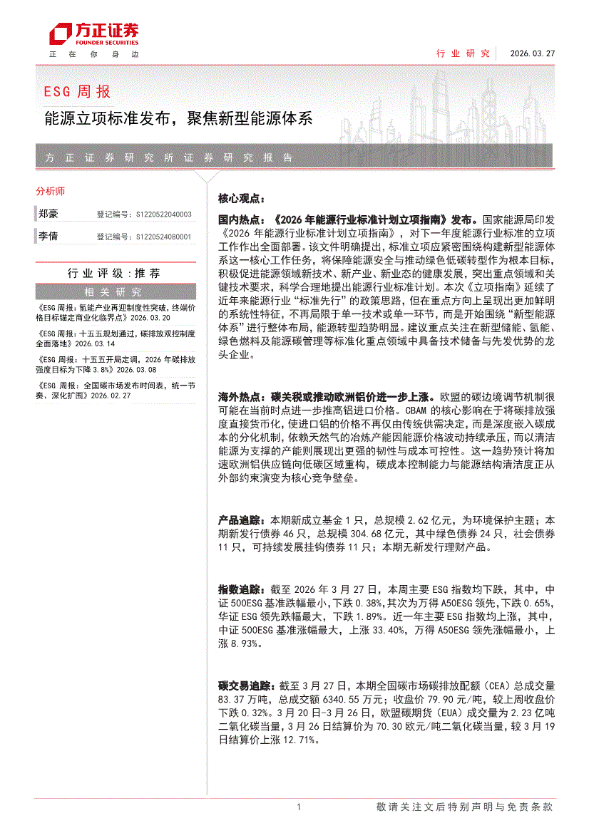 ESG行业:方正证券-ESG行业周报:能源立项标准发布,聚焦新型能源体系-260327