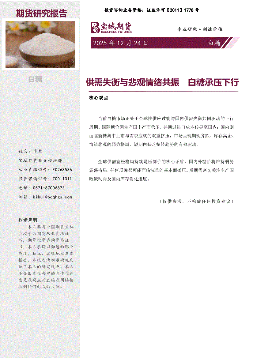 宝城期货-白糖:供需失衡与悲观情绪共振,白糖承压下行-251224