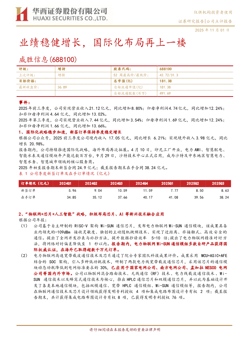 威胜信息:华西证券-威胜信息-688100-业绩稳健增长,国际化布局再上一楼-251101
