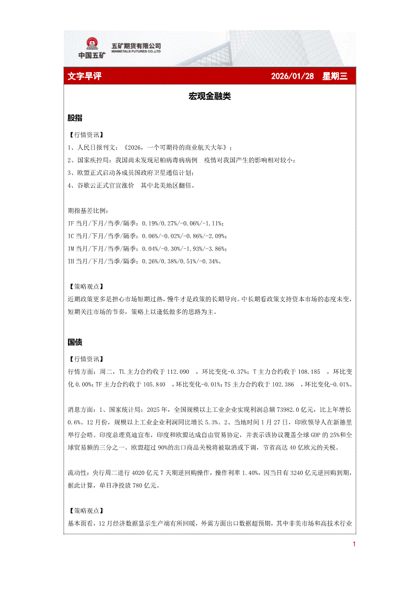五矿期货-文字早评-260128