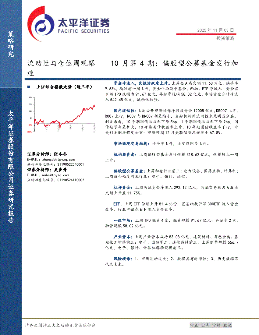 太平洋证券-流动性与仓位周观察——10月第4期:偏股型公募基金发行加速-251103