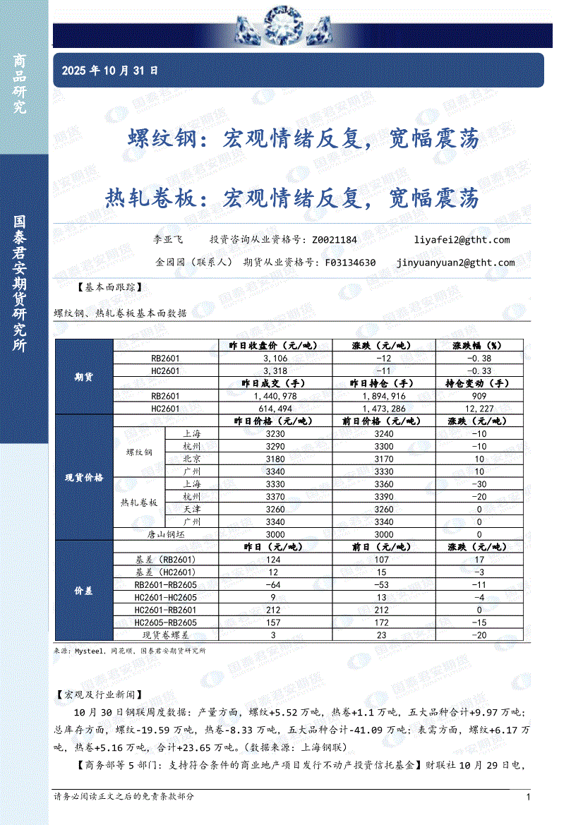 国泰君安期货-螺纹钢:宏观情绪反复,宽幅震荡,热轧卷板,宏观情绪反复,宽幅震荡-251031