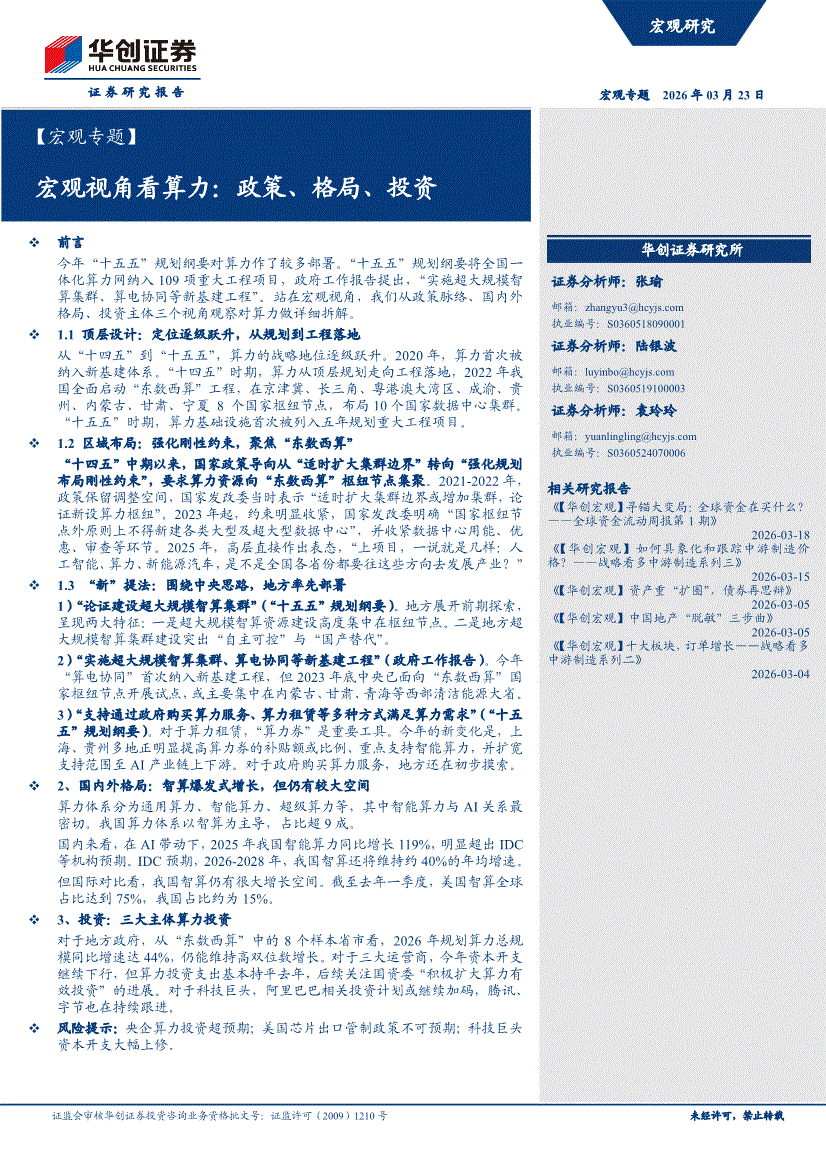 华创证券-【宏观专题】宏观视角看算力:政策、格局、投资-260323