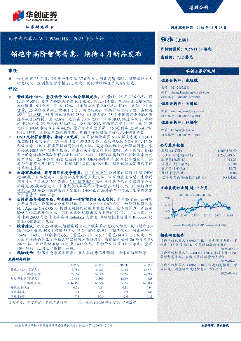 地平线机器人~W:华创证券-地平线机器人~W-9660.HK-2025年报点评:领跑中高阶智驾普惠,期待4月新品发布-260325