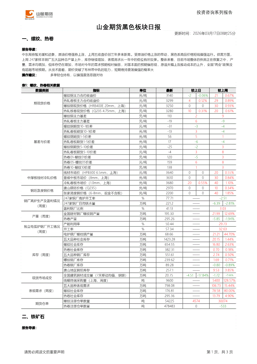 山金期货-黑色板块日报-260317