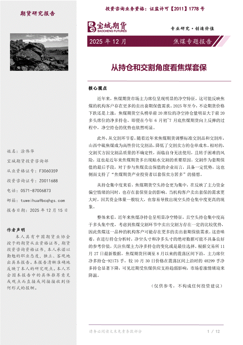 宝城期货-焦煤专题报告:从持仓和交割角度看焦煤套保-251215