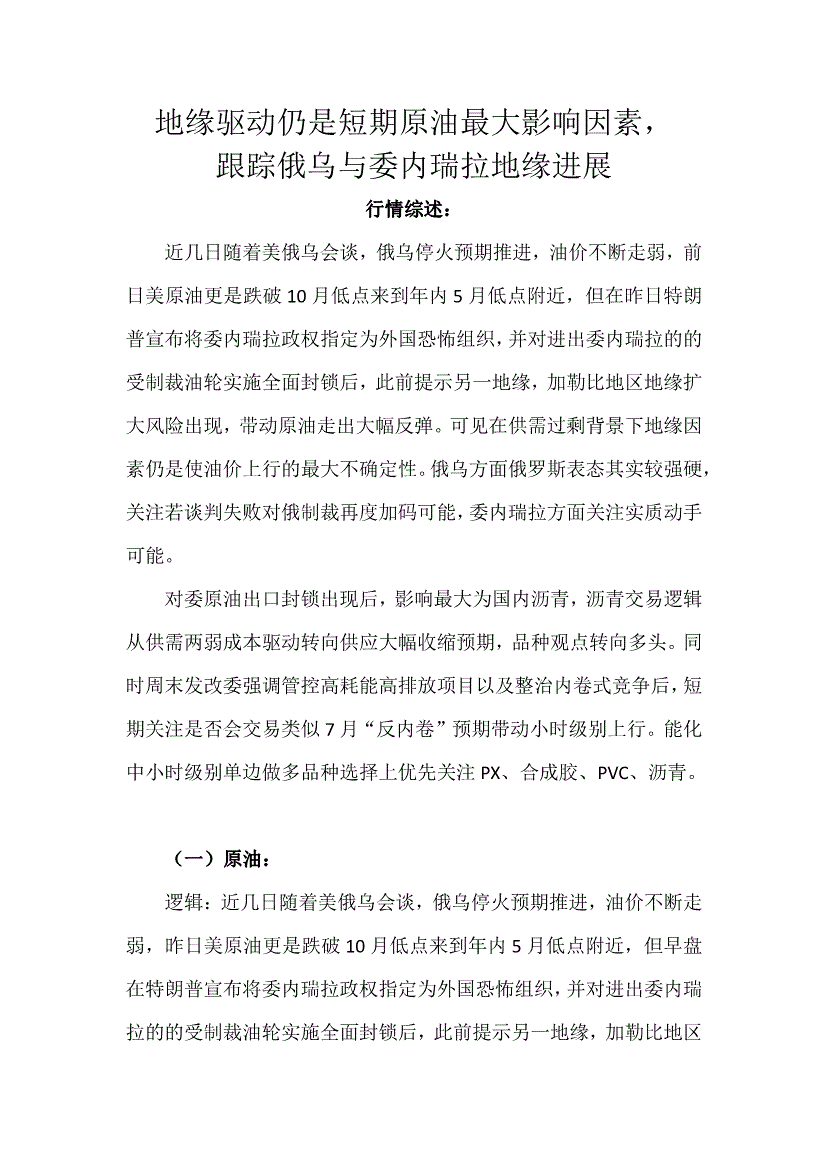 天富期货-地缘驱动仍是短期原油最大影响因素,跟踪俄乌与委内瑞拉地缘进展-251218