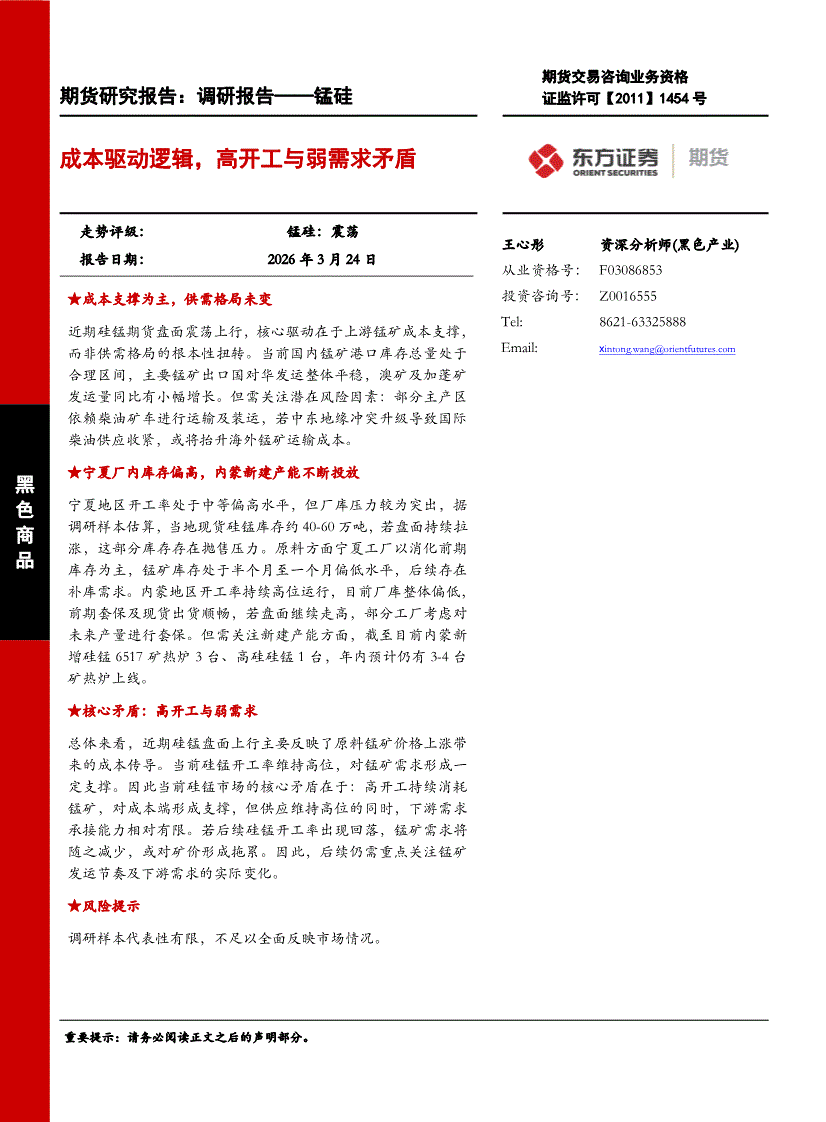 东证期货-锰硅调研报告:成本驱动逻辑,高开工与弱需求矛盾-260324