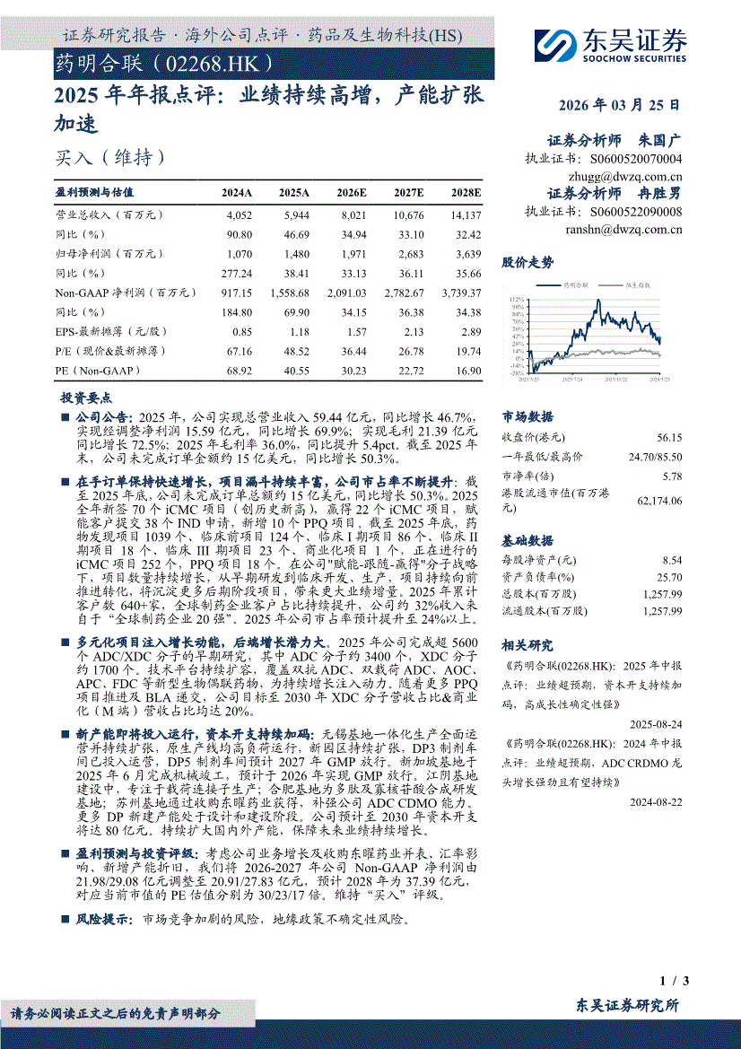 药明合联:东吴证券-药明合联-2268.HK-2025年年报点评:业绩持续高增,产能扩张加速-260325