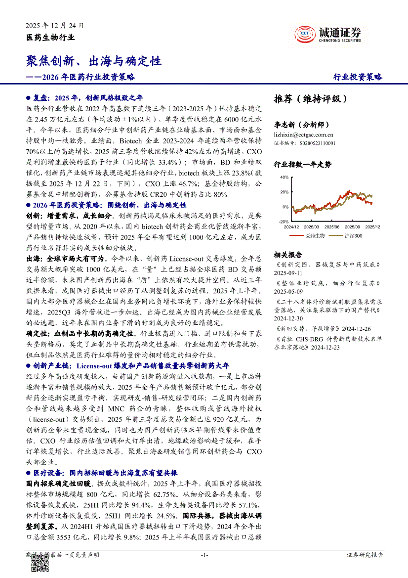 医药行业:诚通证券-2026年医药行业投资策略:聚焦创新、出海与确定性-251224
