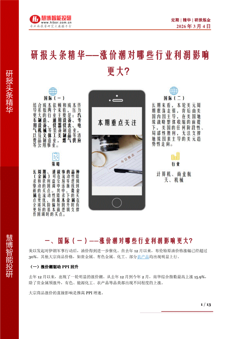 慧博智能投研-慧博研报炼金之研报头条精华:涨价潮对哪些行业利润影响更大?-260304