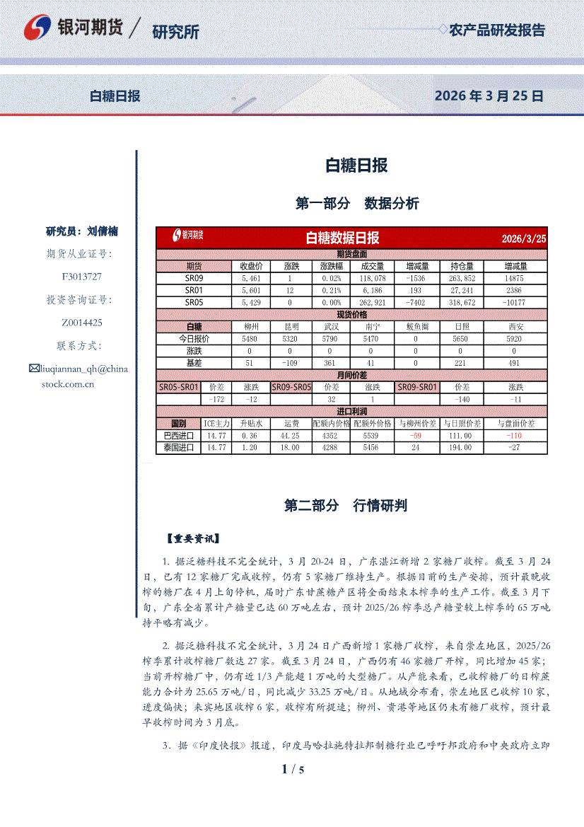 银河期货-白糖日报-260325