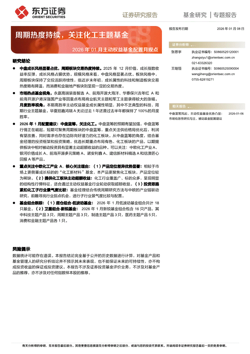 东方证券-2026年01月主动权益基金配置月观点:周期热度持续,关注化工主题基金-260108