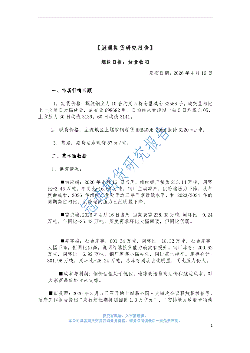 冠通期货-螺纹日报:短期震荡偏弱-260409