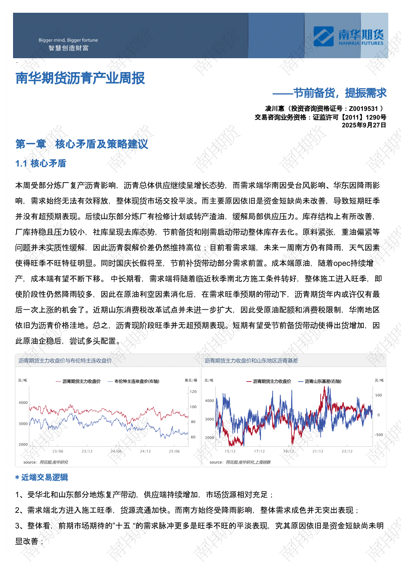 南华期货-沥青产业周报:节前备货,提振需求-250927