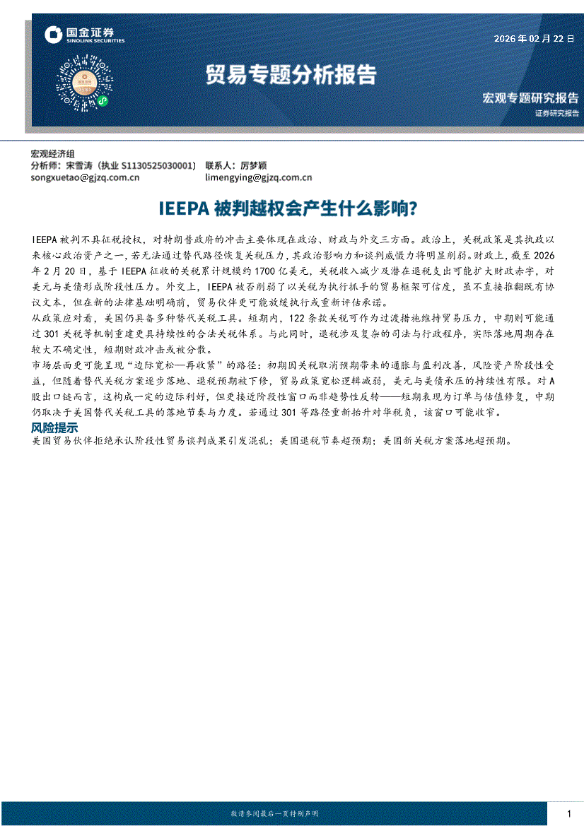 国金证券-贸易专题分析报告:IEEPA被判越权会产生什么影响?-260222