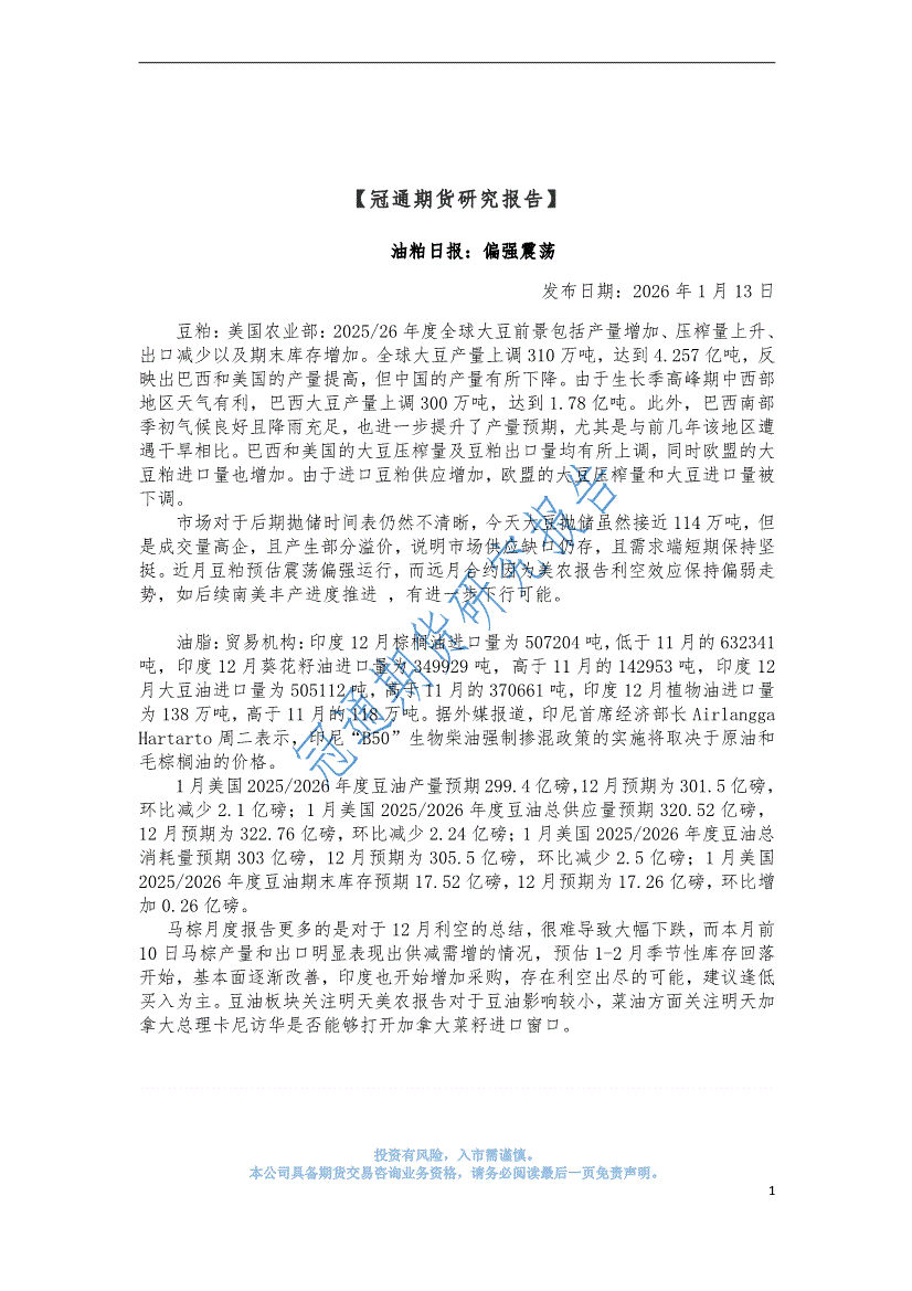 冠通期货-养殖产业链日报:震荡偏强-260114