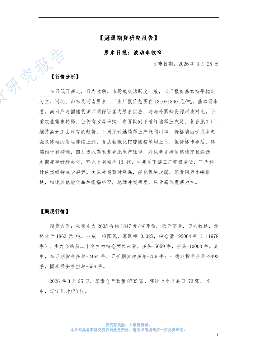 冠通期货-尿素日报:波动率收窄-260325