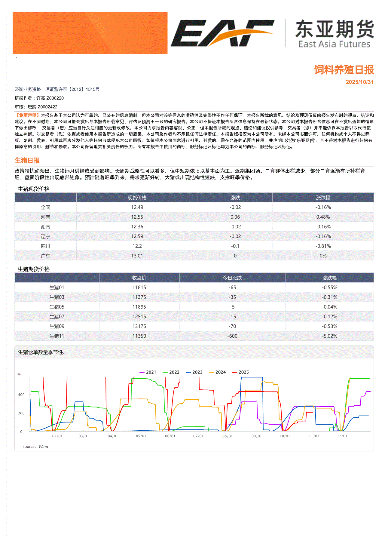 上海东亚期货-饲料养殖日报-251031
