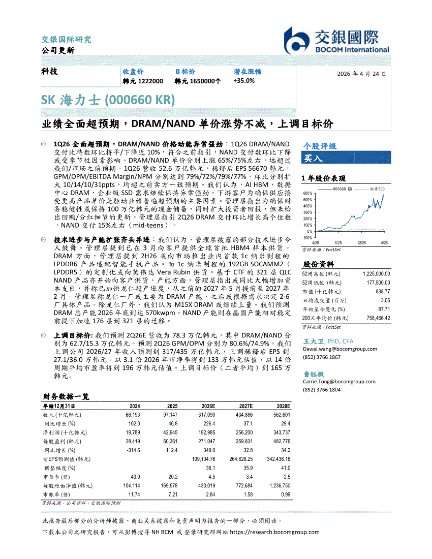 SK海力士:交银国际-SK海力士-000660.KR-业绩全面超预期,DRAMNAND单价涨势不减,上调目标价-260424