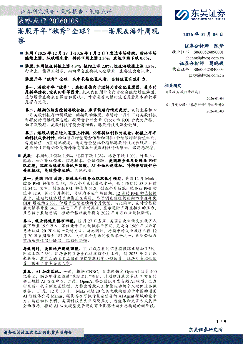 东吴证券-港股开年“独秀”全球?——港股&海外周观察-260105