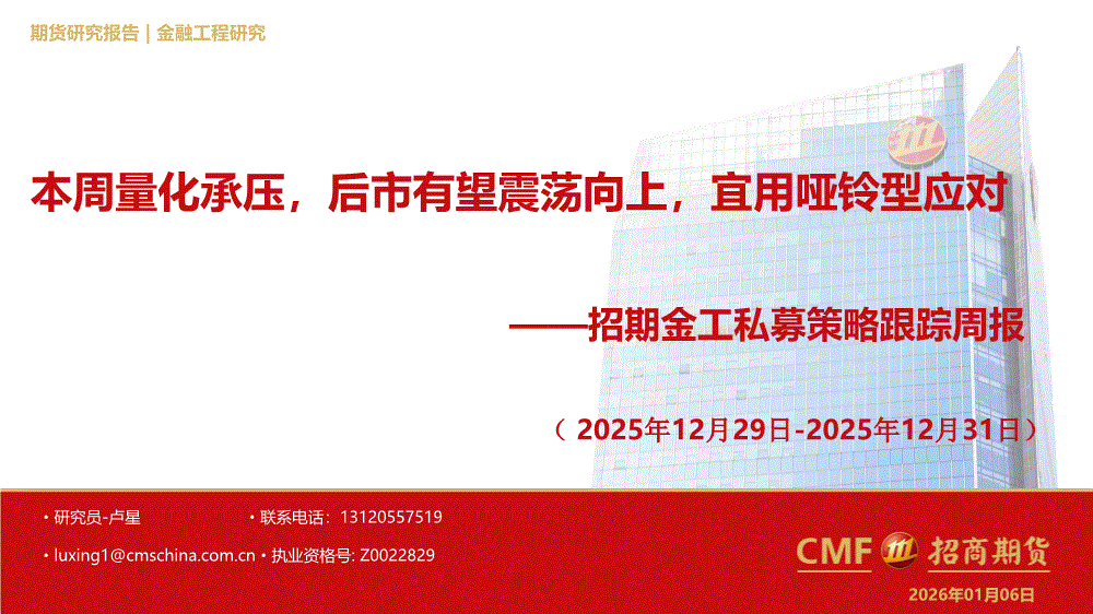 招商期货-招期金工私募策略跟踪周报:本周量化承压,后市有望震荡向上,宜用哑铃型应对-260106