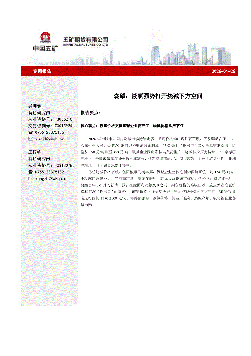 五矿期货-烧碱:液氯强势打开烧碱下方空间-260126