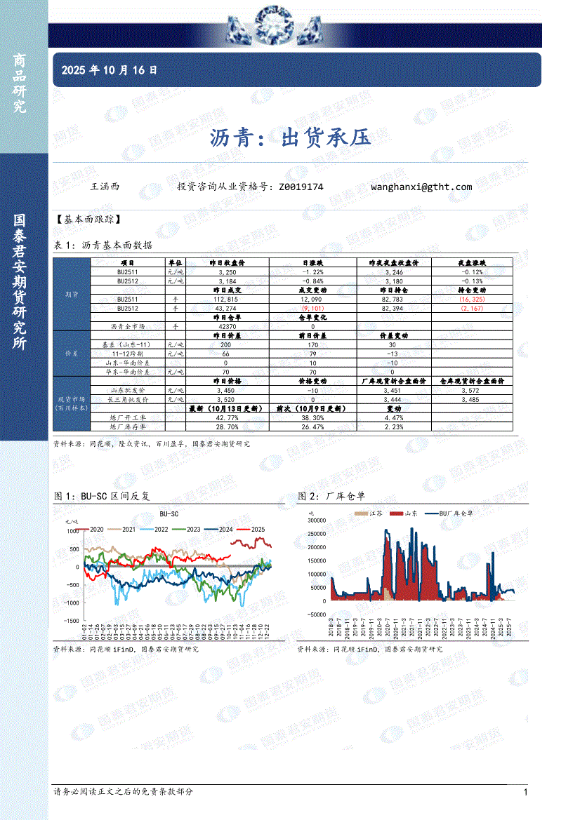 国泰君安期货-沥青:出货承压-251016
