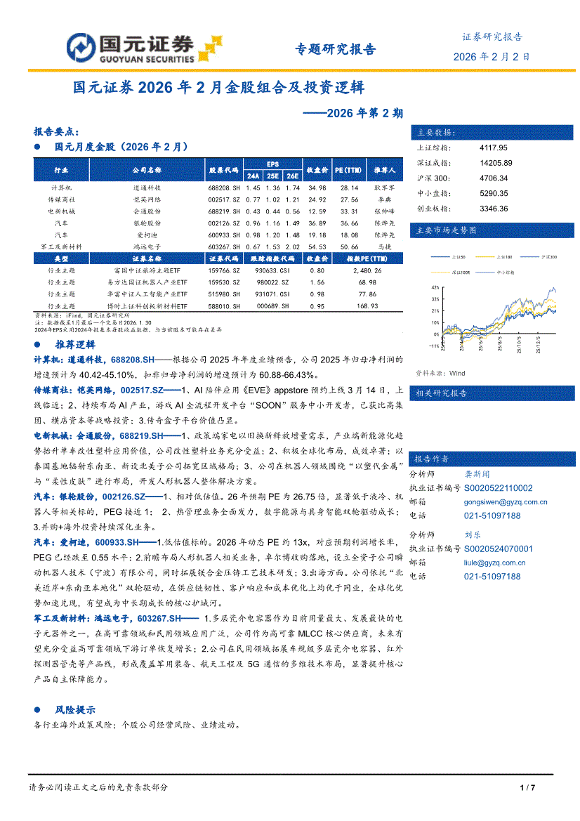 国元证券-2026年第2期:2026年2月金股组合及投资逻辑-260202
