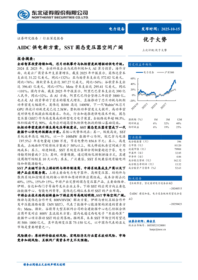 电力设备行业:东北证券-电力设备行业深度报告:AIDC供电新方案,SST固态变压器空间广阔-251015