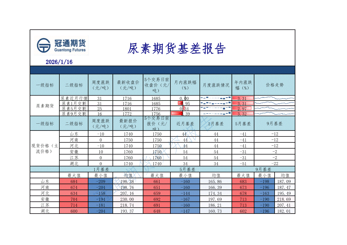 冠通期货-尿素期货基差报告-260116
