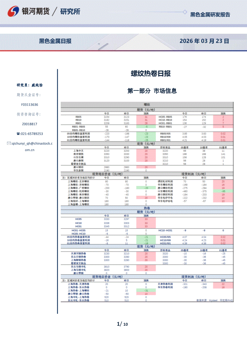 银河期货-螺纹热卷日报-260323