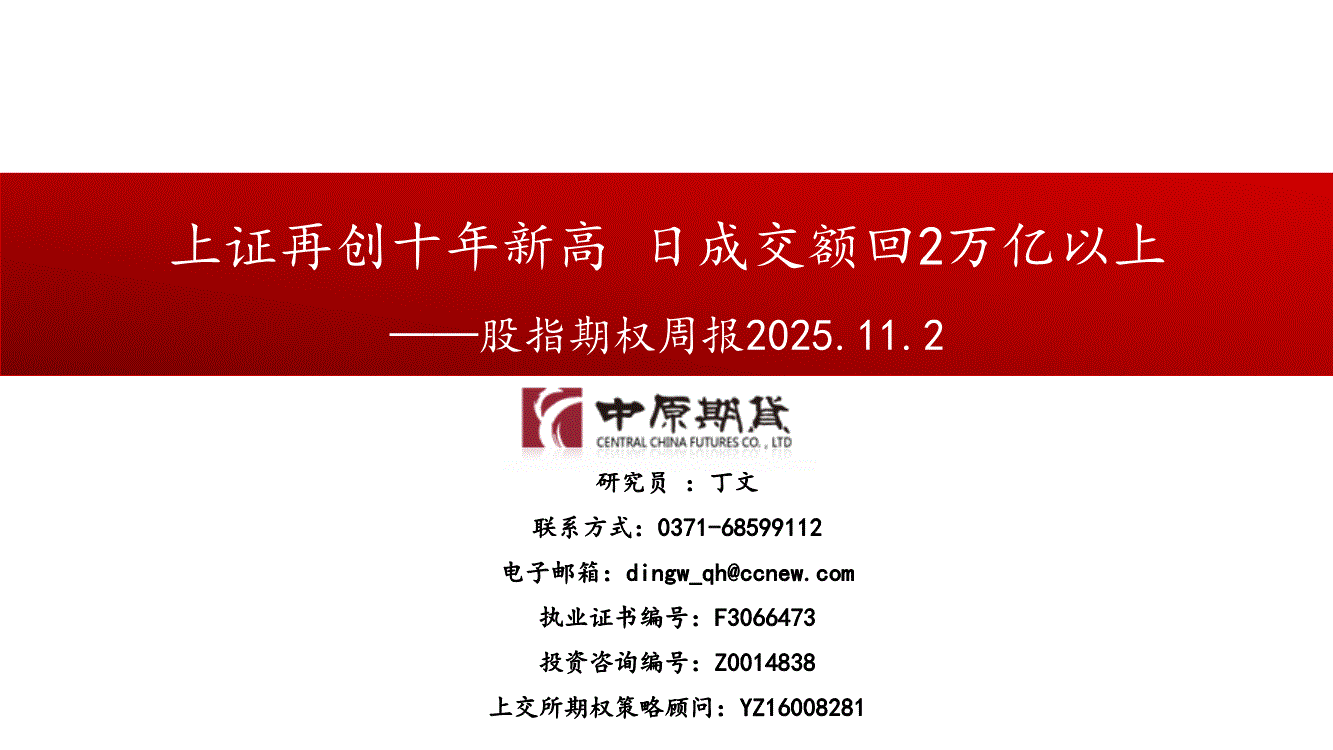 中原期货-股指期权周报:上证再创十年新高,日成交额回2万亿以上-251102