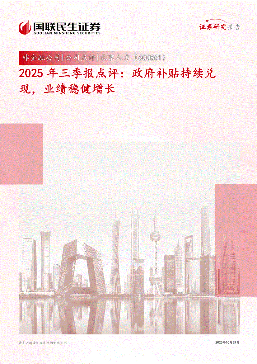 北京人力:国联民生证券-北京人力-600861-2025年三季报点评:政府补贴持续兑现,业绩稳健增长-251029