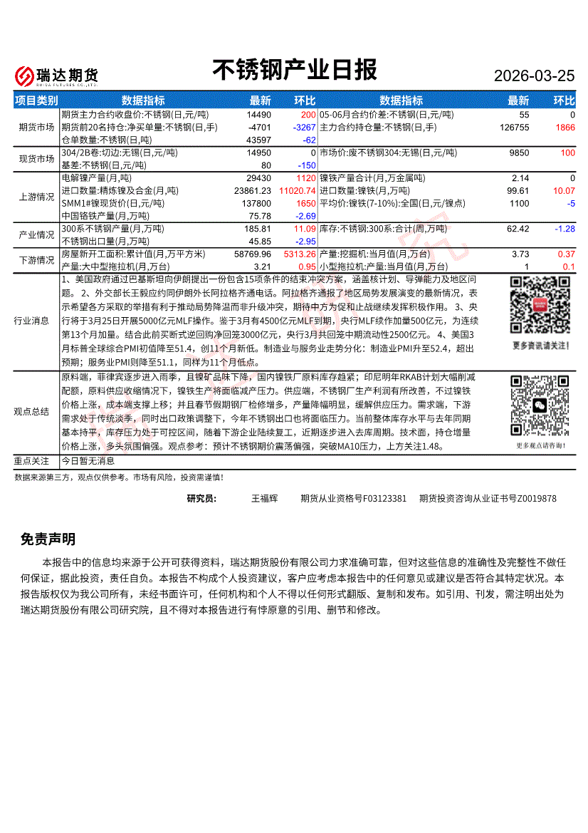 瑞达期货-不锈钢产业日报-260325
