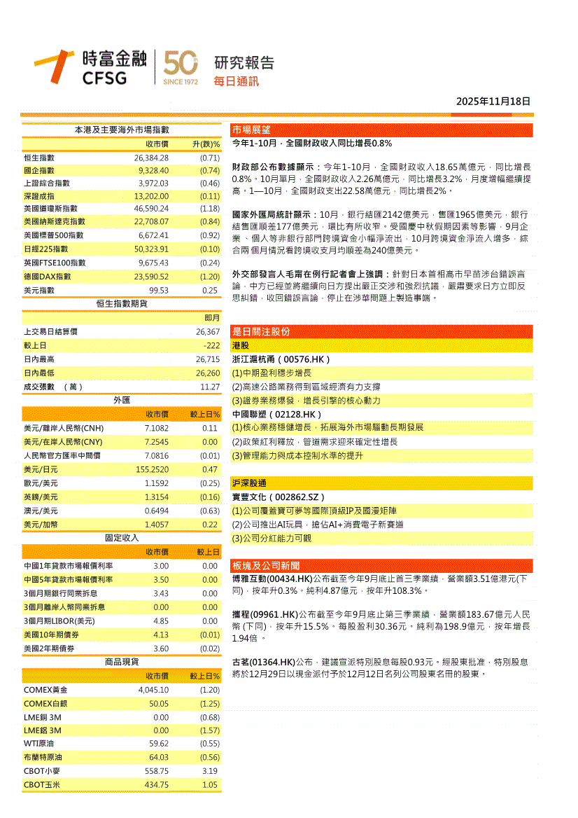 时富金融-每日通讯-251118