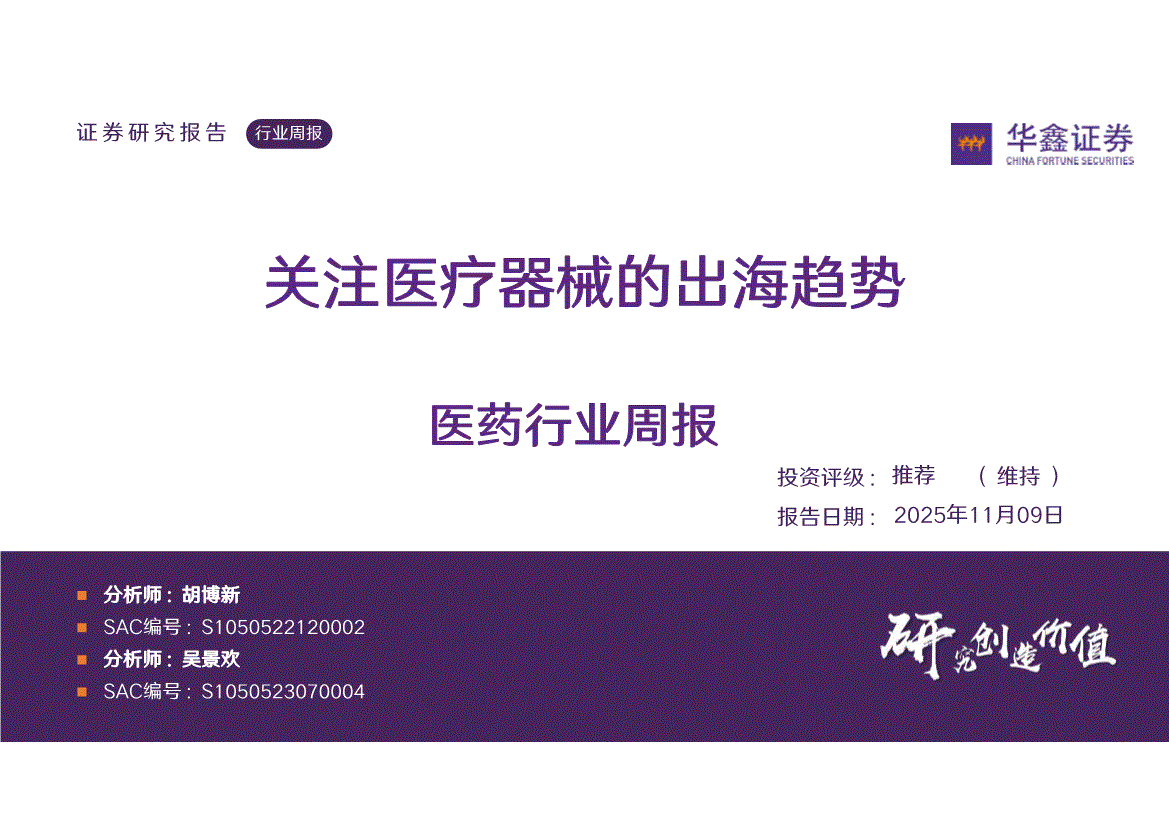 医药行业:华鑫证券-医药行业周报:关注医疗器械的出海趋势-251109