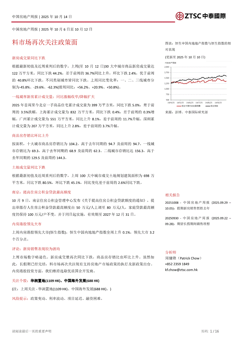 房地产行业:中泰国际-中国房地产行业周报:料市场再次关注政策面-251014