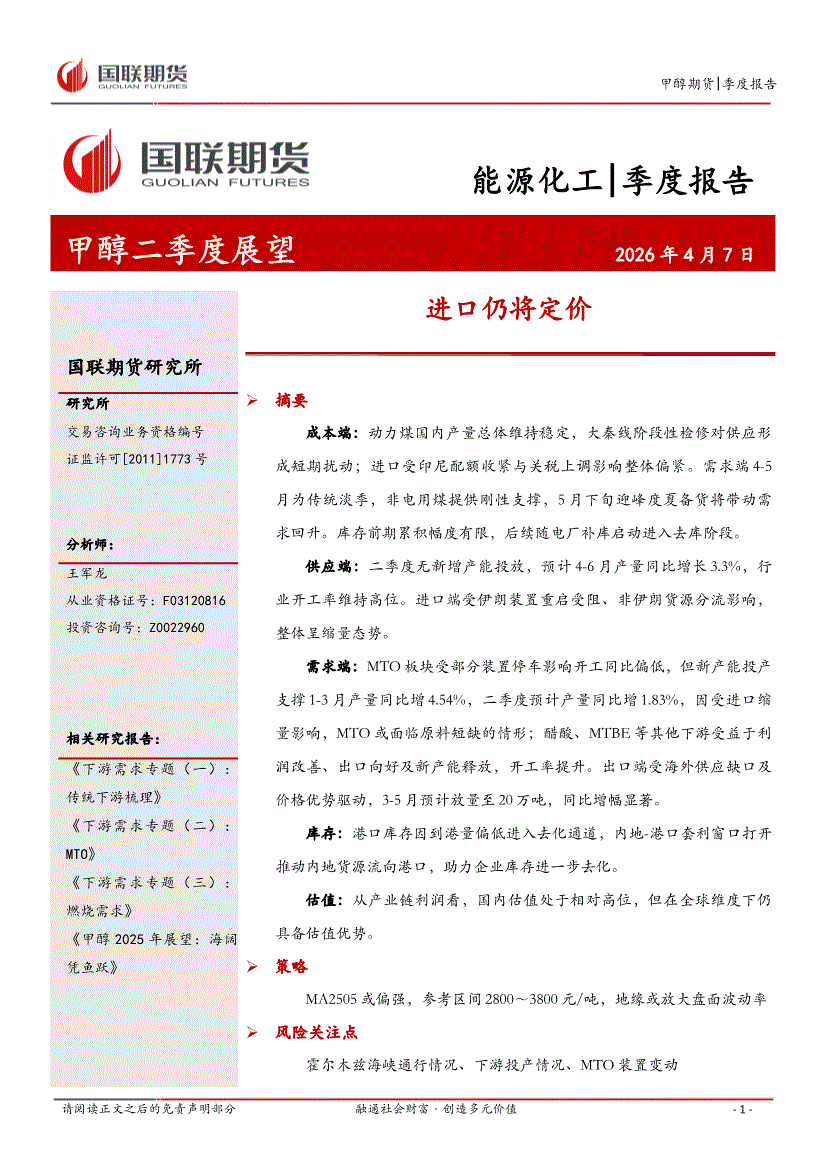 国联期货-甲醇二季度展望:进口仍将定价-260407