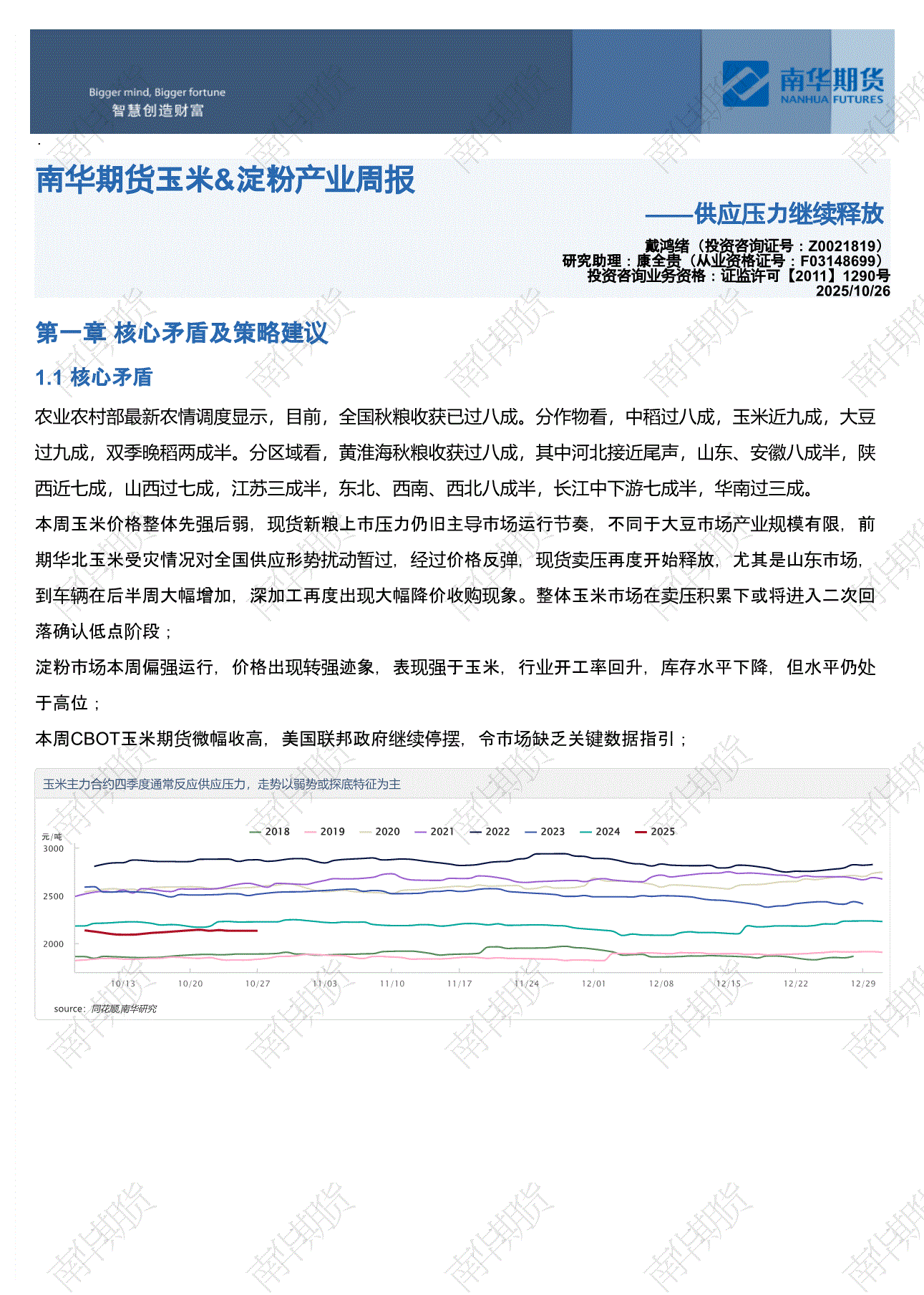 南华期货-玉米&淀粉产业周报:供应压力继续释放-251026