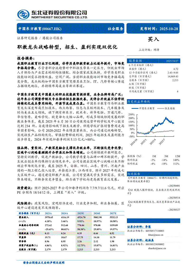 中国东方教育:东北证券-中国东方教育-0667.HK-职教龙头战略转型,招生、盈利实现双优化-251028