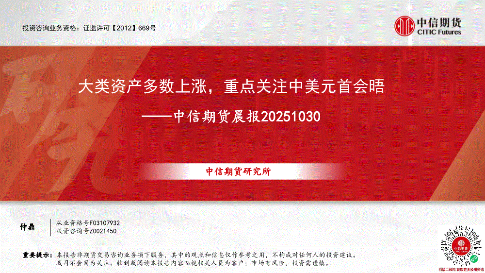 中信期货-晨报:大类资产多数上涨,重点关注中美元首会晤-251030